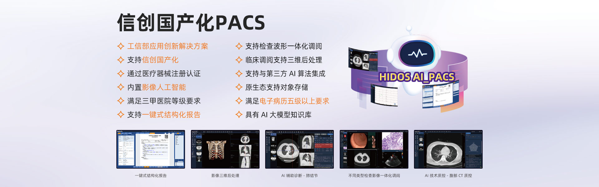 影像信息化深耕15年以上,影像產(chǎn)品群全面,擁有全院PACS/RIS、影像檢查醫(yī)技臨床預(yù)約、云影像(云膠片)、區(qū)域影像暨檢查互認(rèn)、影像中臺(tái)、影像人工智能、MDT多學(xué)科聯(lián)合會(huì)診、遠(yuǎn)程醫(yī)療協(xié)同平臺(tái)解決方案,是國內(nèi)極少能全面提供上述全套產(chǎn)品群的廠家之一。